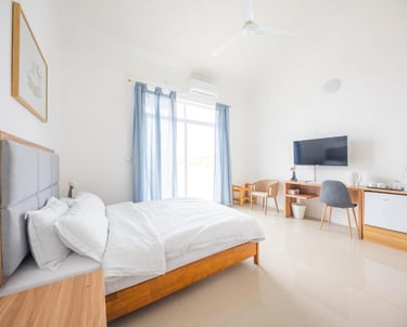 Comfortable Amenities: The guest house features air-conditioning, private bathrooms, and modern amenities such as streaming services and a mini-bar.